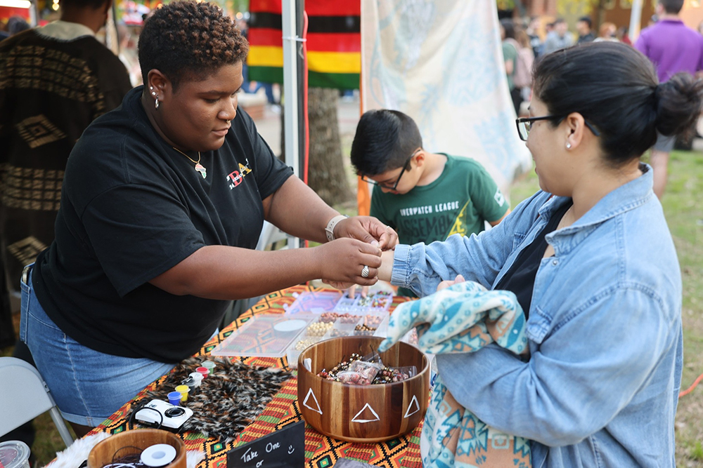 A booth demonstrating the culture and traditions of Zimbabwe received the first-place prize from a panel of judges during Light the Night 2025 at Arkansas Tech University.